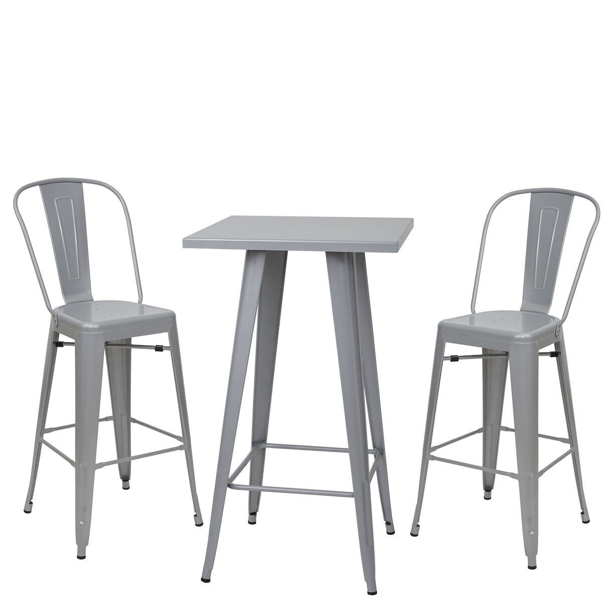 Mendler Set Stehtisch + 2x Barhocker HWC-A73, Barstuhl Bartisch, Metall Industriedesign ~ grau