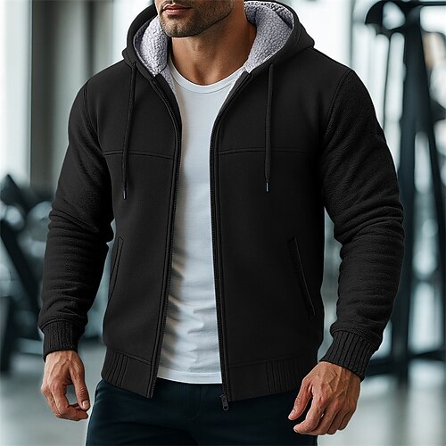 Per uomo Felpa con cappuccio a zip intera Felpa con cappuccio e zip Sherpa morbido Giacca in Pile Felpa con cappuccio in pile Nero Verde militare Blu Marrone Cachi Con Cappuccio Grafico Con zip