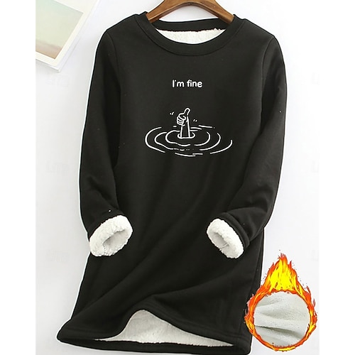 Per donna Felpa Pullover Grafico Moda Essenziale Casual Manica Lunga Girocollo Top lunghi Streetwear Abbigliamento Quotidiano Casuale Stampato Foderato in pile Nero Rosa Rosa scuro Blu Autunno Inverno