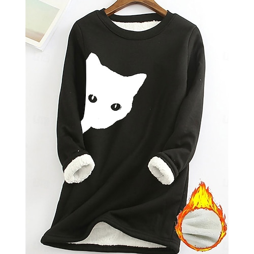 Per donna Felpa Pullover Animale Gatto Moda Essenziale Casual Manica Lunga Girocollo Top lunghi Streetwear Abbigliamento Quotidiano Casuale Stampato Foderato in pile Nero Rosa Rosa scuro Blu Autunno