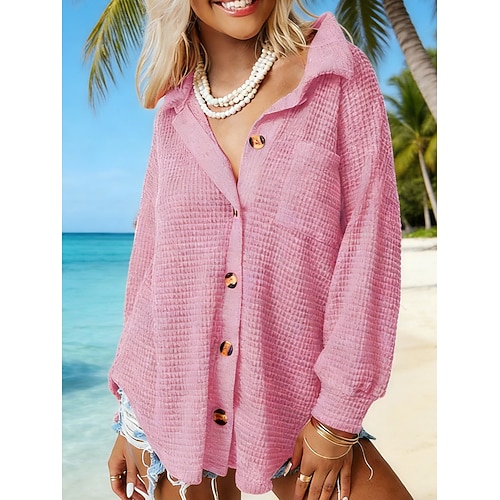 Per donna Camicia Tinta unica Elegante Casual Manica Lunga Colletto a Camicia Top Regolari Quotidiano Bottoni Nero Bianco Giallo Rosa Estate Primavera