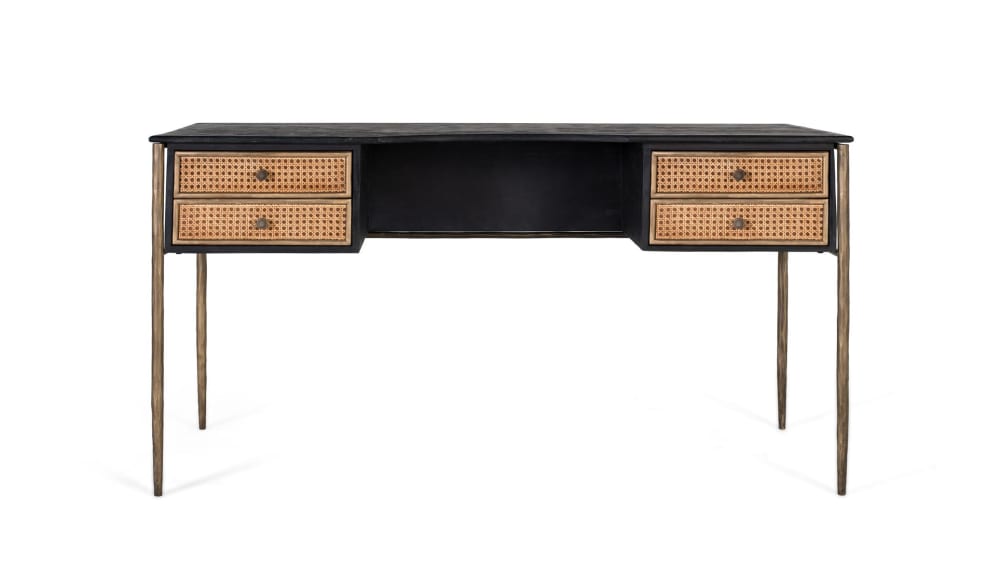 Scrivania in legno di mango con cassetti a doghe e gambe in bronzo