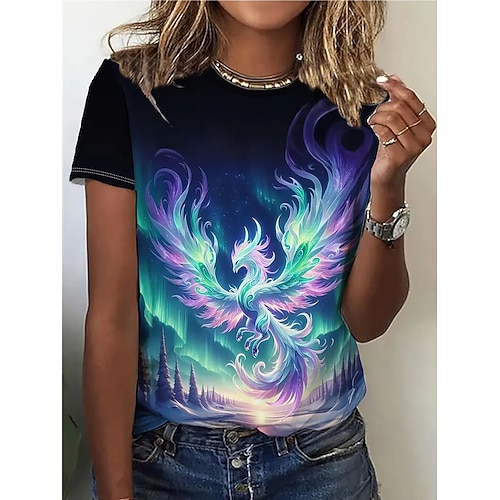 Per donna Maglietta Top estivi Uccello Paesaggio Classico Casual Manica Corta Girocollo Top corti Quotidiano Weekend Stampato Arcobaleno Estate Primavera Autunno