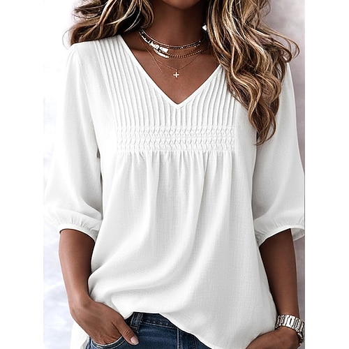 Per donna Camicia Tinta unica Semplice Vintage Elegante Scollo a V Top Regolari Blu Bianco Rosa Viola chiaro Estate Primavera
