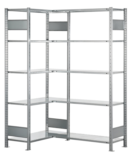 PROREGAL Eckregal | Grundregal (Felder A+B) | HxBxT 200x100x40cm | 2x5 Ebenen | Längenriegel | Verzinkt