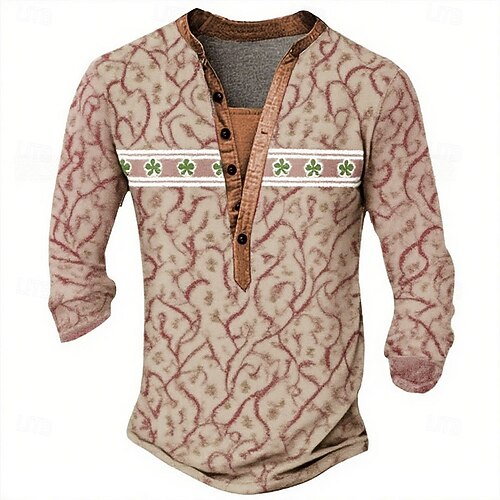 Per uomo Stampa Trifoglio Maglietta Maglia Henley Manica Lunga Designer Retrò Vintage Stile Boho Streetwear Casuale Quotidiano Estate Primavera Autunno Blu Marrone Verde Kaki Grigio Henley Maglietta