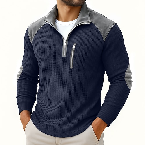 Per uomo Maglia Henley Maglietta a Maglia Waffle Camicie da uomo con toppe sui gomiti Manica Lunga Zip a un quarto Primavera Autunno Autunno Inverno Retrò Vintage Casual Tasche Con zip Patchwork