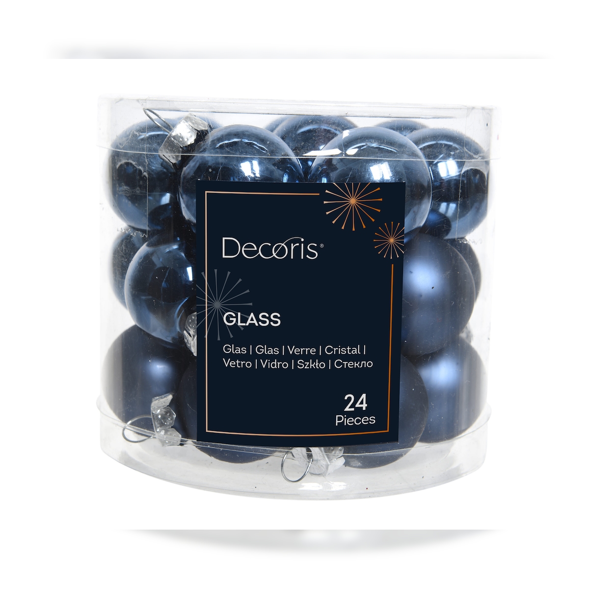Decoris 24 Weihnachtskugeln 25mm Glas mini Christbaumkugeln Spiegelbeeren 3cm dunkelblau