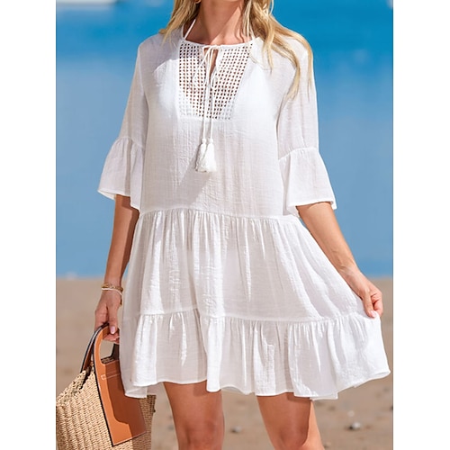 Per donna Mini Abito Abito Bianco Abito da Spiaggia Copricostume Elegante Vintage Moda Manica del polsino svasato Quotidiano All'aperto Spiaggia Vestibilità comoda Semplice Mezza Manica Girocollo