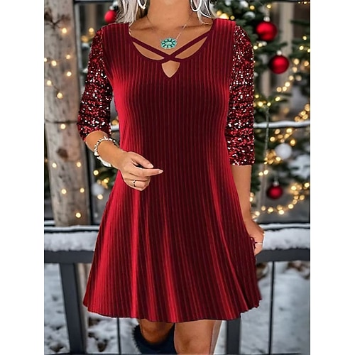 Abito Mini Donna A Line Abito Casual Giornaliero Vacanza Vestibilità Regolare Semplice Manica 3/4 Collo a V Vino Verde Albicocca Primavera Autunno Inverno