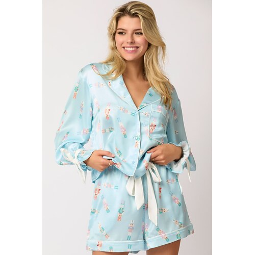 Pigiamoni di Babbo Natale Pigiama Satinato Costume Cosplay da Donna Adulti Festa di Capodanno Top Pantaloni Regalo di San Valentino per Lei