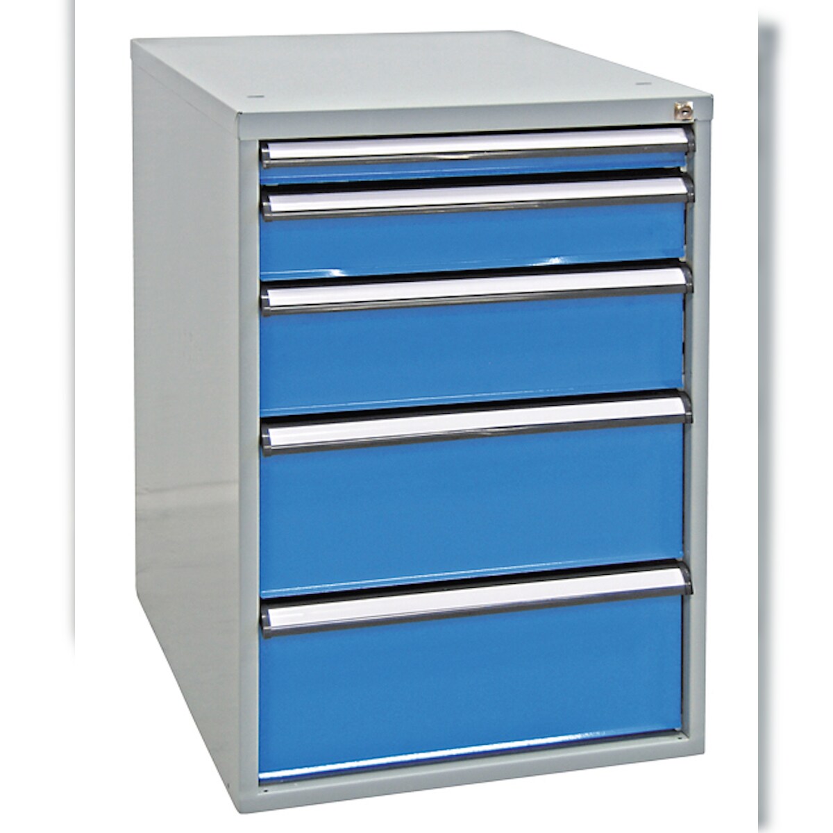 PROREGAL Schubladenbox mit 5 Schubladen für Werkbank Rhino| HxBxT 80x53x70cm | Traglast 60kg | Lichtgrau/Lichtblau