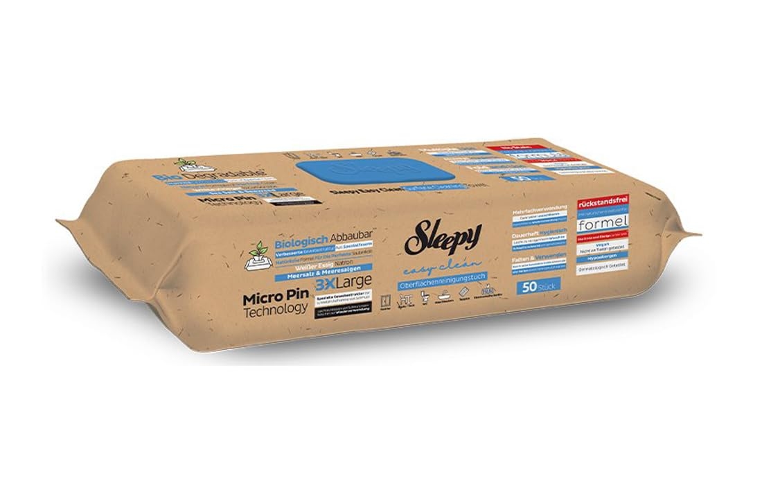 Sleepy Easy Clean Bio Oberflächen und Boden Reinigungstücher 2 in 1 (Blau) mit Meersalz & Meeresalgen - 1 Packung x 50 Tücher