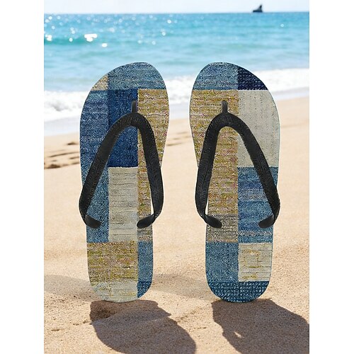 infradito da uomo con stampa a foglie blu: stile tropicale ed elegante per vacanze al mare, escursioni tra le isole e cene in spiaggia