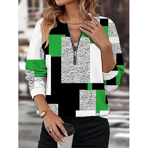 Per donna Felpa Pullover Felpe con cerniera Grafico Geometrico Blocco di colori Moda Casual Manica Lunga Girocollo Top Regolari Streetwear Abbigliamento Quotidiano Cerniera Stampato Rosso Blu Viola