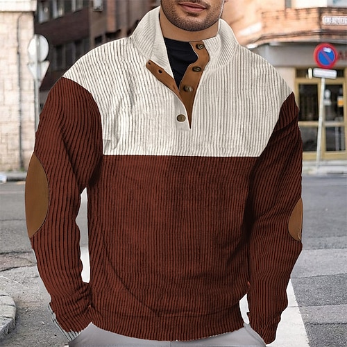 Per uomo Maglia Aalbicocca Khaki chiaro. Nero Vino Verde militare Colletto Mao Blocco di colori Patchwork A coste Testurizzato Sport Outdoor Quotidiano Ferie Poliestere Velluto a coste Streetwear
