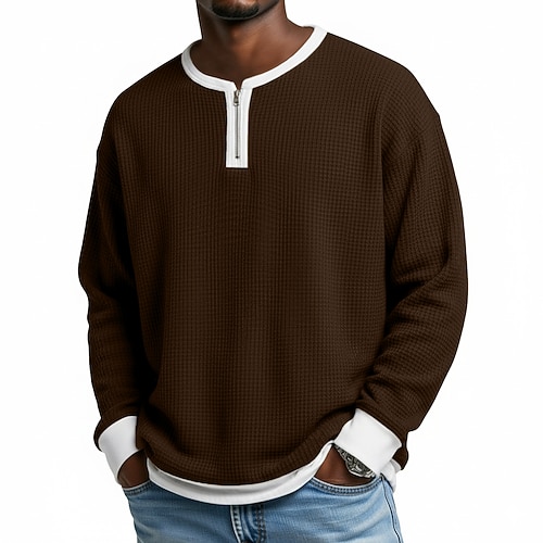 Per uomo Maglietta Waffle Maglietta con Zip a Quarti Maglietta Camicia a Maniche Lunghe Manica Lunga Girocollo Autunno Primavera Autunno Autunno Inverno Blocco di colori Moda Designer Essenziale