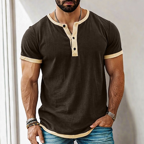 Per uomo Maglietta con bottoni Maglietta Maglia Henley a nido d'ape Maglia Henley Manica Corta Henley Primavera Estate Blocco di colori Moda Designer Essenziale Patchwork Vacanza Streetwear Uscire
