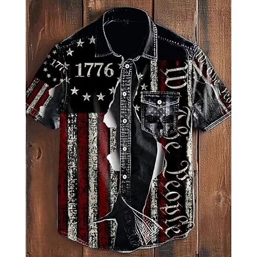 Giornata dell'indipendenza Per uomo Bandiera Americana Patriottico 1776 Camicia Camicia Estiva Camicia con Bottoni Manica Corta Moda Casual Ferie Estate Primavera Collo ripiegato Stampa 3D camicie