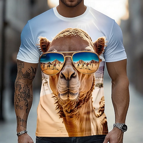 Per uomo Animale Divertente Cammello Maglietta Manica Corta maglietta Stampa 3D Girocollo Camicia Esagerato Designer Feste Ferie 1 2 3 Estate Primavera Abbigliamento S M L XL XXL XXXL