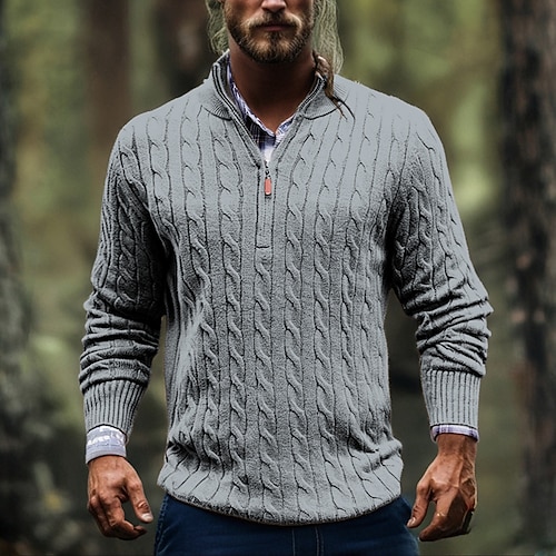 Per uomo Maglione Maglioni con zip a un quarto Maglione a maglia A Coste Maglia Top Regolari Lavorato a maglia Semplice Collo alla coreana Moda Casual Vacanza Abbigliamento quotidiano Abbigliamento