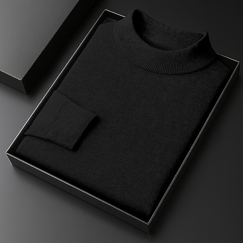 Per uomo Pullover Maglione Maglione lavorato a maglia A coste Maglia Lavorato a maglia Liscio Collo a lupetto Essenziale Tenere al caldo Da tutti i giorni Da mare Abbigliamento Autunno inverno Nero