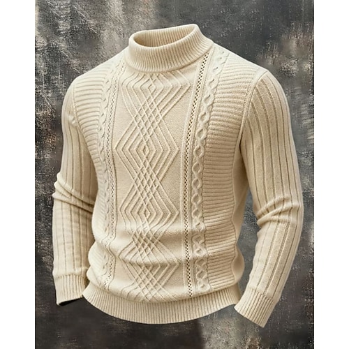 Per uomo Maglione a collo alto Felpa Maglione a collo alto da uomo Maglione A coste Cavi Maglia Lavorato a maglia Liscio A collo alto Tenere al caldo Contemporaneo moderno Da tutti i giorni Per uscire