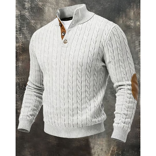 Per uomo Felpa Maglione a maglia Maglione lavorato a maglia A Coste Maglia Top Regolari Bottoni Lavorato a maglia Blocco di colori Collo Alto Moda Streetwear Casuale Abbigliamento quotidiano