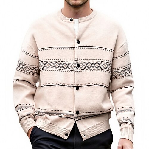 Per uomo Maglioni di Natale Maglione per le feste Cardigan Maglione Corto Maglione a maglia A Coste Maglia Top Regolari Bottonato Geometrico Girocollo Moda Classico Vacanza Abbigliamento quotidiano