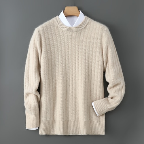 Per uomo Maglione Maglione a maglia A Coste Maglia Top Regolari Lavorato a maglia Blocco di colori Girocollo Moda Essenziale Vacanza Abbigliamento quotidiano Abbigliamento Inverno Cachi Beige S M L