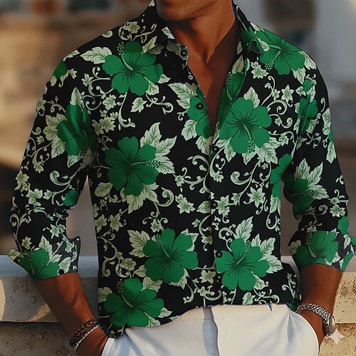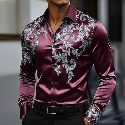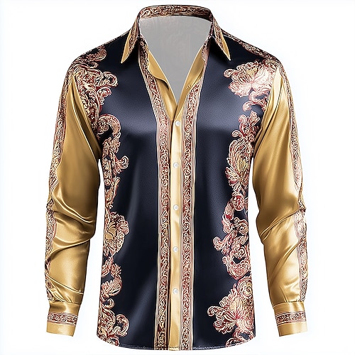 Per uomo Stampa Floreale Etnico Fiori Camicia Camicia in raso Camicia elegante Manica Lunga Vintage Retrò Vacanza Abbigliamento Quotidiano Estate Primavera Autunno Collo ripiegato Stampa 3D Camicie
