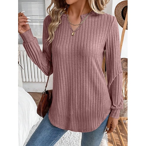 Per donna Felpa Elegante Quotidiano Colletto Polo Lavorato a maglia Manica Lunga Top Regolari Maglia Quotidiano Weekend Nero Bianco Primavera Autunno