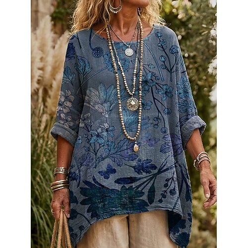 Per donna Camicia Blusa Floreale Grafico Vintage Quotidiano Elegante Manica Lunga Girocollo Top lunghi Quotidiano Uscire Stampato Blu Viola Beige Estate Primavera Autunno