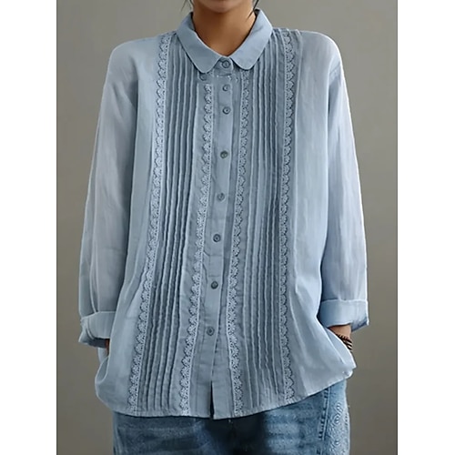 Per donna Camicia Tinta unica Semplice Elegante Bohemien Vintage Manica Lunga Top lunghi Pizzo Blu Bianco Giallo Blu marino Viola chiaro Estate Primavera