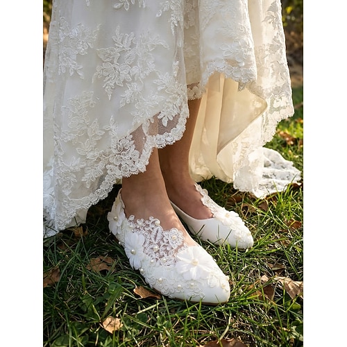 scarpe basse da donna in pizzo color avorio con perle floreali, romantiche ballerine da sposa per matrimoni all'aperto in giardino