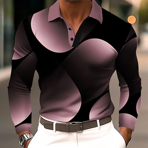 Per uomo Geometrico Polo Manica Lunga Magliette polo Bavero Business Casual Athleisure Abbigliamento quotidiano Stampa 3D Bottoni Primavera Autunno Inverno Violetto Giallo Rosso