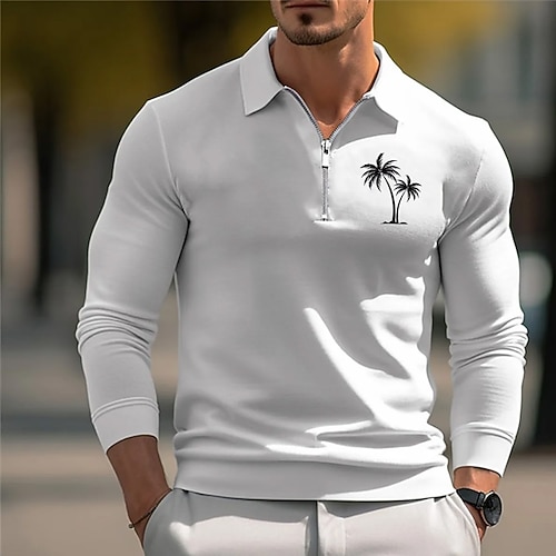 Per uomo Palma Polo Manica Lunga Collo ripiegato Vacanza Tempo libero Athleisure Casual Quotidiano Cerniera Stampa 3D Primavera Autunno Inverno blu navy Grigio Bianco