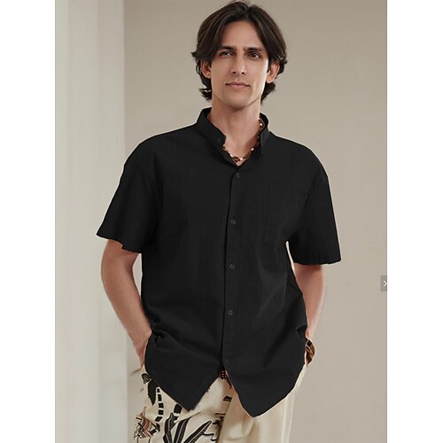 10% Lino Tasca Frontale Per uomo Camicia di lino Camicia casual Nero Bianco Giallo Manica Corta Semplice Henley Primavera Estate Vacanza Camicia hawaiana Abbigliamento