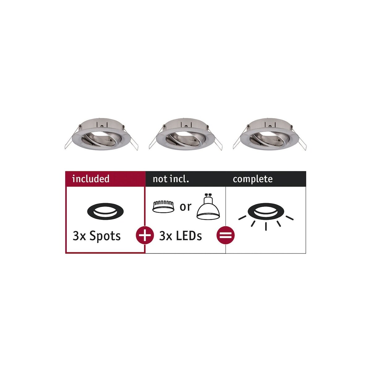 Paulmann Einbauleuchte Choose Basisset schwenkbar rund 84mm 50° max. 3x10W dimmbar Eisen gebürstet 92485