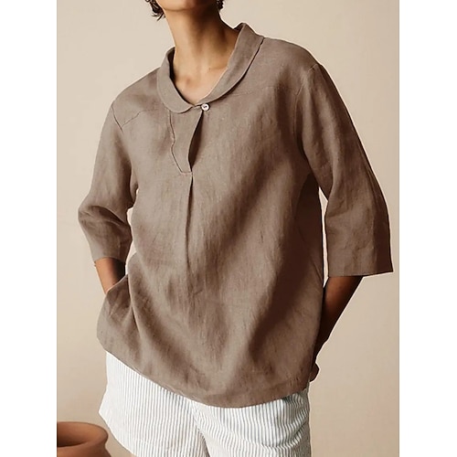 Per donna Camicie di cotone e lino Semplice Quotidiano Moderno Manica 3/4 Colletto a Camicia Top Regolari Quotidiano Bottoni Nero Arancione Marrone Cachi Grigio Estate Primavera Autunno