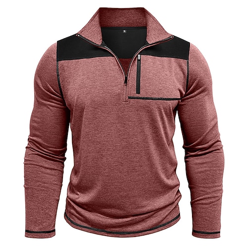 Per uomo Polo Polo con zip a un quarto Abbigliamento quotidiano Data Zip a un quarto Manica Lunga Moda Essenziale Blocco di colori Patchwork Cerniera Primavera Autunno Vestibilità regolare Vino Blu