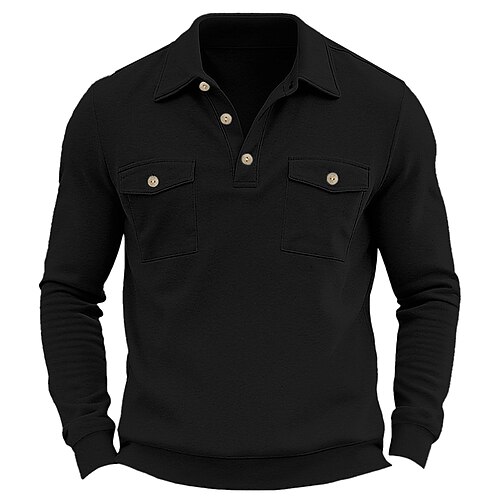 Per uomo Linea Magliette Polo a Nido d'Ape Manica Lunga Magliette polo Camicie con Colletto Business Casual All'aperto Abbigliamento da sera Abbigliamento casual alla moda Bottoni Nero