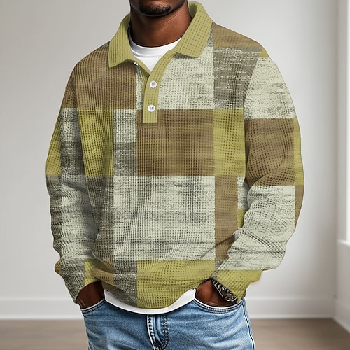 Per uomo Geometrico Blocco di colori Magliette Polo a Nido d'Ape Manica Lunga Magliette polo Camicie con Colletto Business Casual Affari Abbigliamento da lavoro Abbigliamento quotidiano Bottoni