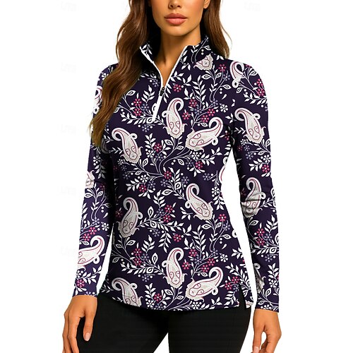 Per donna Polo da golf Maglia da tennis Maglietta da tennis Manica Lunga Stampato Zip a un quarto Pullover Protezione UV Elastico Traspirante Pallavolo Tennis Golf Collo con zip Maglietta Polo Rosso