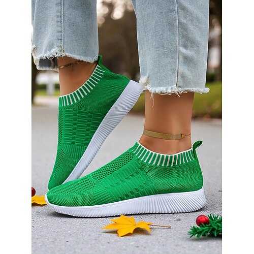 sneakers slip-on flyknit verdi da donna: vestibilità a calzino elasticizzata, design traspirante e leggero, perfette per le passeggiate quotidiane, i viaggi, lo street style natalizio e l'abbigliamento casual invernale