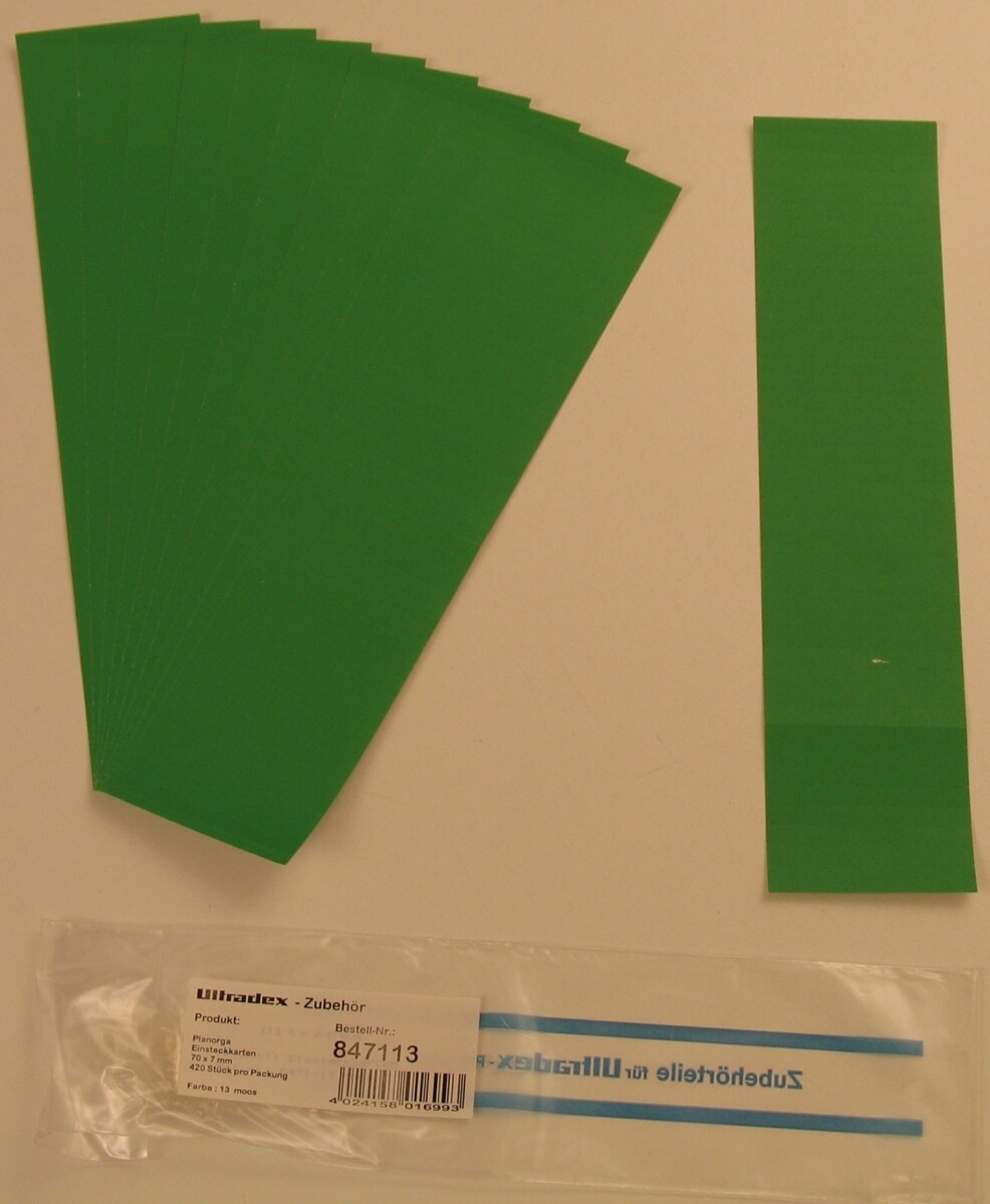 Einsteckkarten für 9,5mm Einsteckschiene 70x7,5mm VE=420 Stück moos