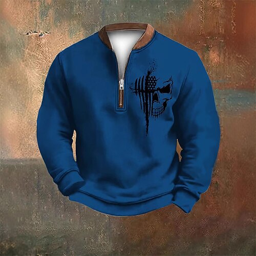 Per uomo Maglia Felpa con zip corta Nero Bianco Rosso Blu marino Grigio Mezza zip Blocco di colori Teschio Bandiera Americana Mezza cerniera Stampato Quotidiano Sport Outdoor Ferie Poliestere