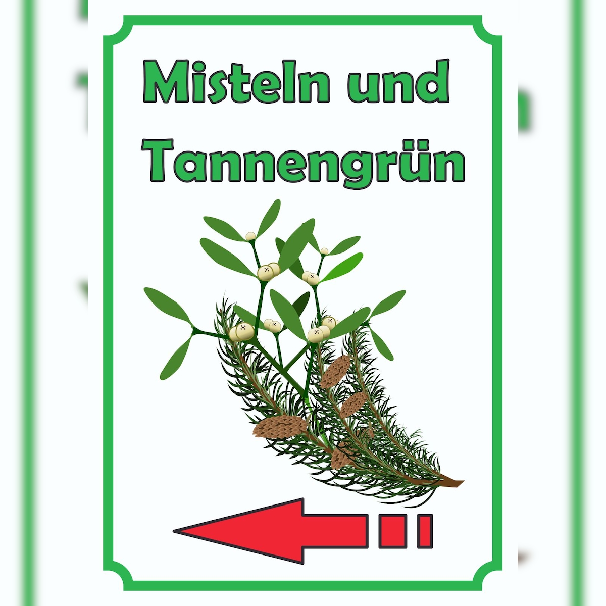 HB-Druck Misteln und Tannengrün Schild Hochkant mit Pfeil links A2 Rückseite selbstklebend