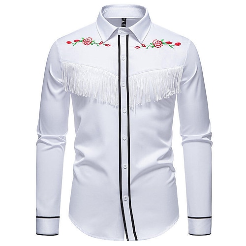 Per uomo Camicia Camicia estiva Maglietta informale Camicia da spiaggia Camicia con bottoni Nero Bianco Manica lunga Floreale Bavero Da mare Hawaiano Nappa Abbigliamento Poliestere Di tendenza