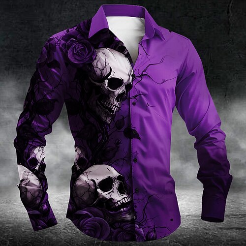Per uomo Teschio Rosa Fiori Camicia Camicia con Bottoni Manica Lunga Vintage Retrò Stile gotico oscuro All'aperto Casuale Ferie Primavera Autunno Collo ripiegato Stampa 3D camicie con colletto Blu